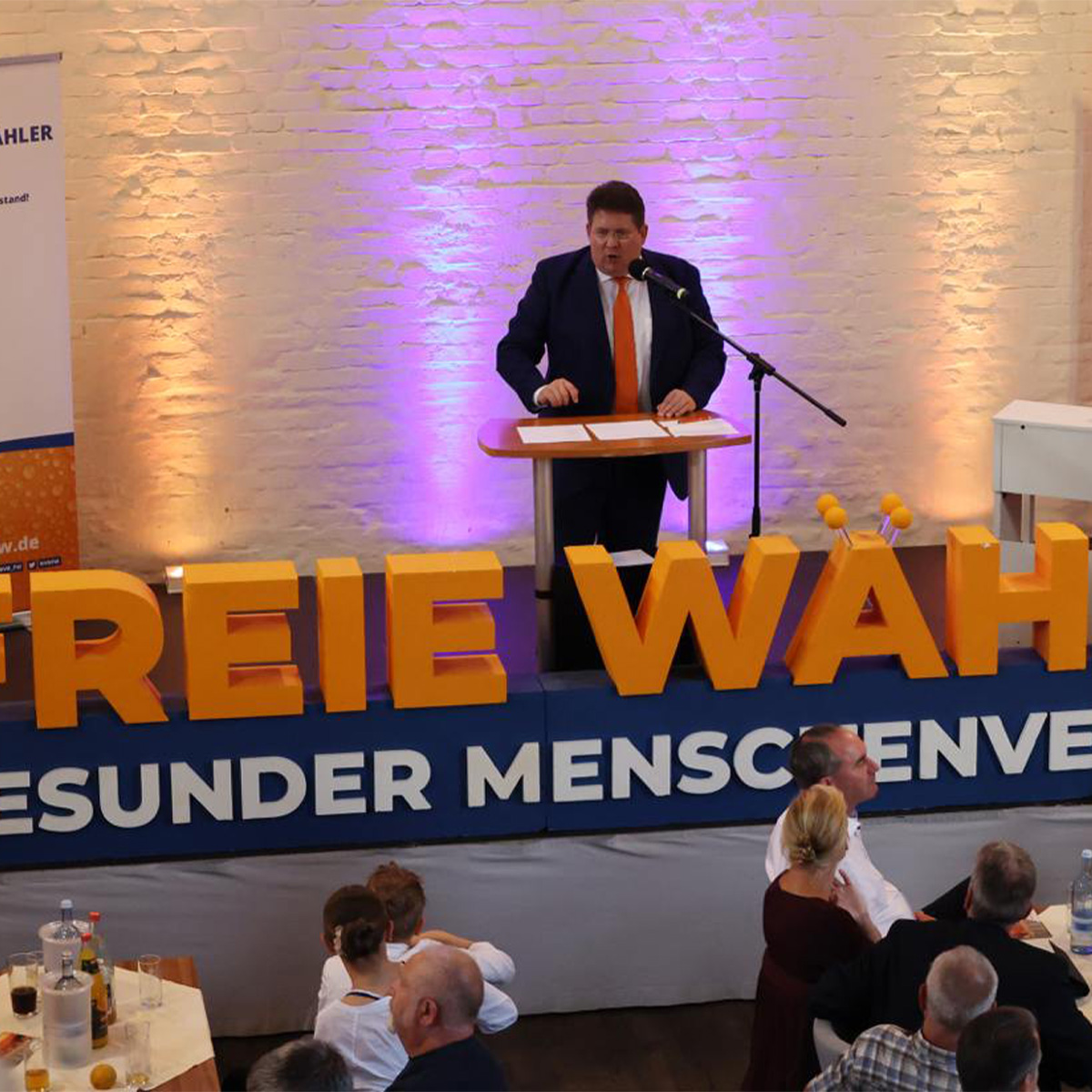 Frisch ausgeruht trafen sich Aiwanger und Vida am nächsten Tag mit Jägern und Landwirten in Kremmen. Für den Jäger und Landwirt Aiwanger war dies ein Heimspiel. Er machte deutlich, wo die Probleme liegen und wie wichtig beide Gruppen für die Landschaftspflege, den Artenschutz und natürlich die Ernährung sind. Auch wir setzen im Wahlkampf auf Plakate mit dem Motto: „Bauern stärken – denn Lebensmittel wachsen nicht im Kühlschrank.“
