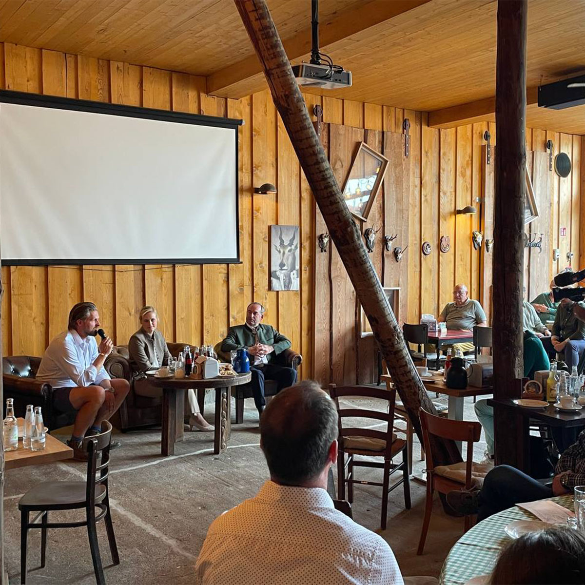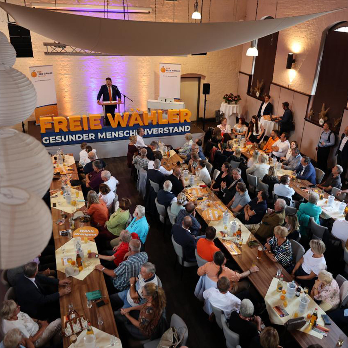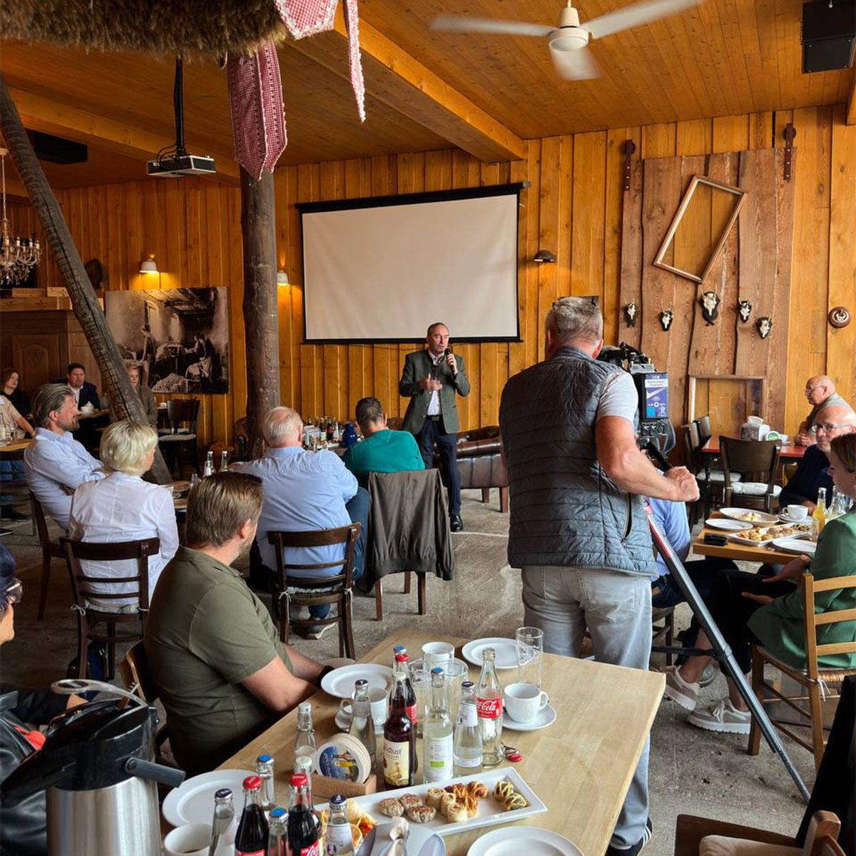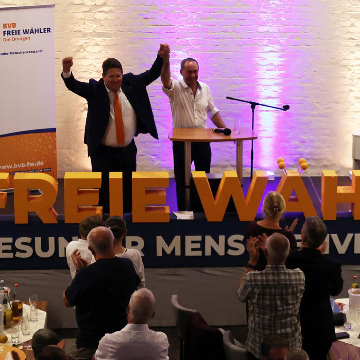 Nach den interessanten Firmenbesichtigungen folgte das wahlkampftypische Highlight des Abends. Im Ofenhaus Bernau versammelten sich über 250 Personen, um Péter Vida und Hubert Aiwanger live zu erleben. Bei zünftiger bayerischer Brotzeit und kühlen Getränken heizten Aiwanger und Vida dem Publikum ordentlich ein und nahmen dabei kein Blatt vor den Mund. Sie sprachen über eine absurde Innenpolitik, die auf zunehmende Messerangriffe mit Längenbeschränkungen für Klingen reagiert, eine verfehlte Wirtschaftspolitik, die selbst Traditionsunternehmen durch ein Übermaß an Abgaben und Bürokratie ruiniert, sowie eine verfehlte Sozialpolitik, die mit einem überhöhten Bürgergeld einerseits und hohen Steuern und Abgaben andererseits den Anreiz zu arbeiten gegen Null senkt. Das Publikum war begeistert und feierte die beiden Wahlkämpfer mit Standing Ovations.